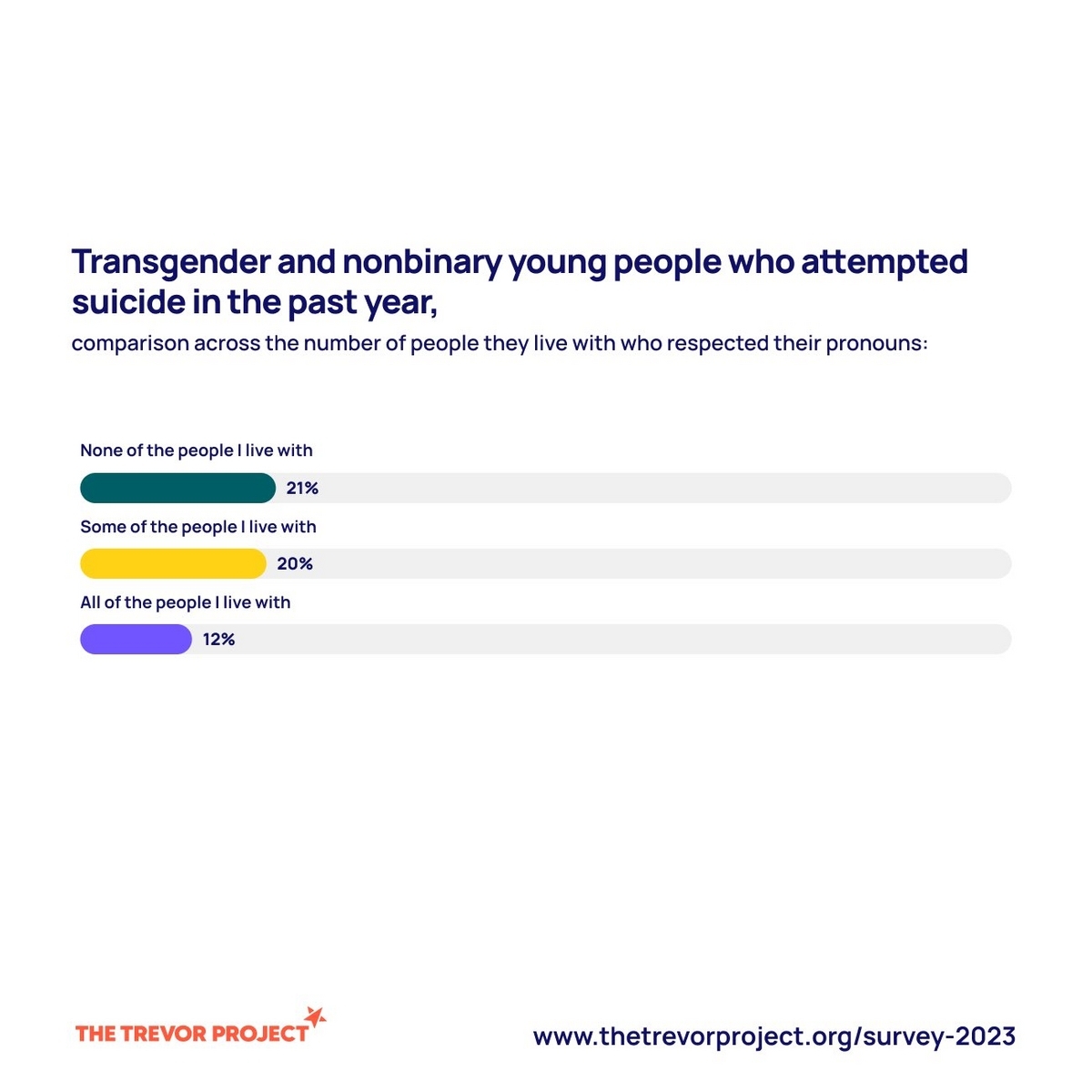 家族全員が代名詞を尊重している場合はそうでない場合に比べて、トランスやノンバイナリーの若者が自殺を試みる割合が大幅に改善されている。